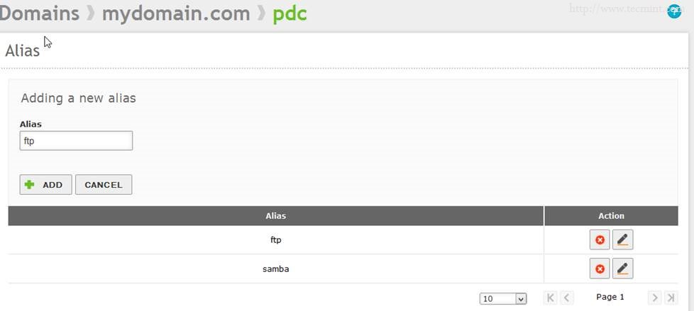 6. Hit Add New button, enter “ftp” on Alias filed and click ADD button.