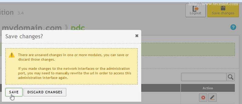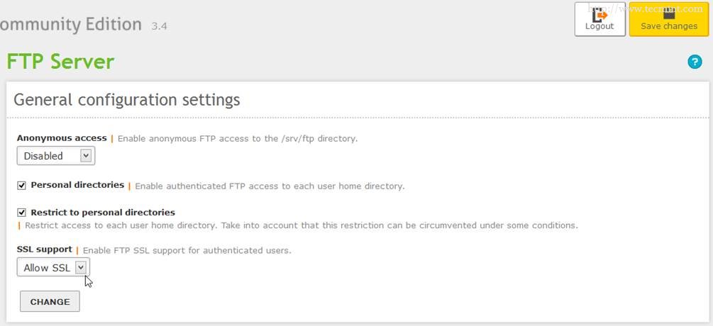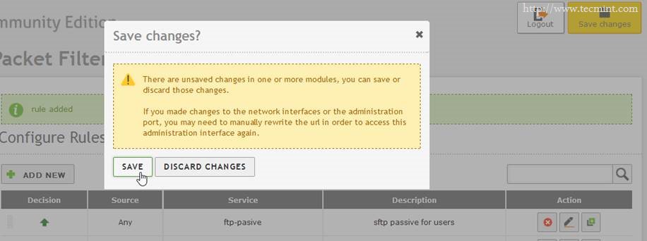 10. Hit Change -> Save Changes and confirm with Save for enabling vsftp new configuration.