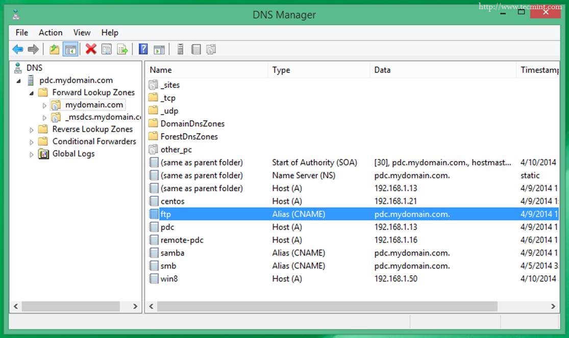 Let’s add a DNS CNAME (alias ) for this domain name ( some programs can translate this DNS record directly into ftp protocol ).