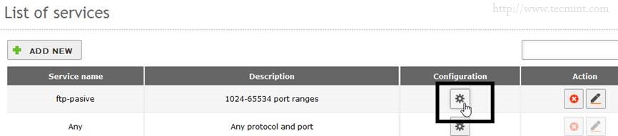 13. In the newly created entry (ftp-passive in this case) on Service List hit on Configuration icon.