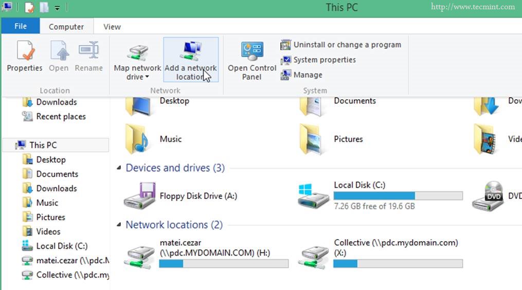 17. On Windows 8.1 open Explorer to This PC and click on Add a Network Location ->Choose a custom network location -> Next.