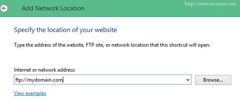 18. On the location prompt type your Zentyal domain name prefixed by ftp protocol.