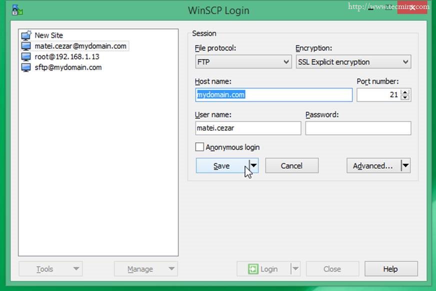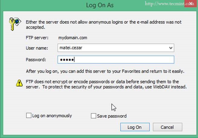 20. At the FTP dialog login enter desired credentials to login on FTP server.