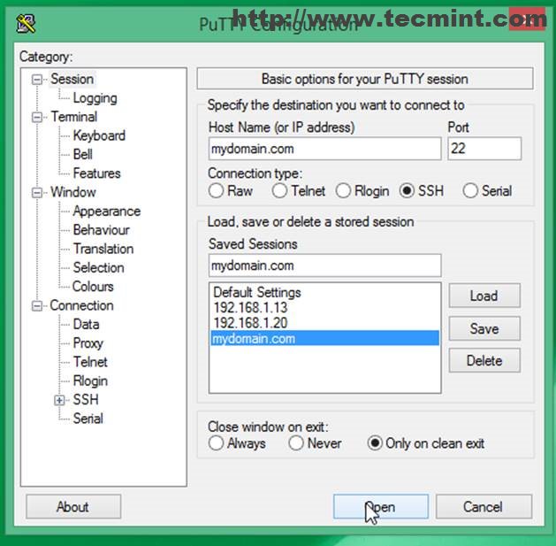 1. Logon to Zentyal 3.4 PDC Server from Putty using Zentyal IP or domain name with root account.