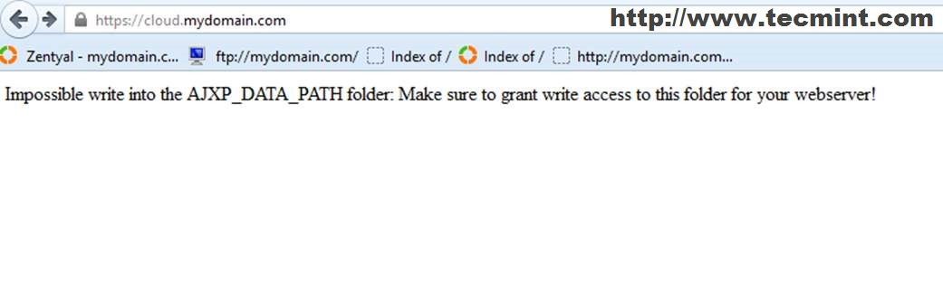 6. If you get an error message like the one in the screenshot above grant www-data with exclusive permissions on Pydio data directory.