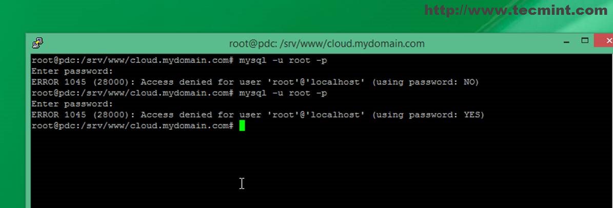 8. If you get an error while trying to access MYSQL database with standard root account issue the following command to change MYSQL root password.