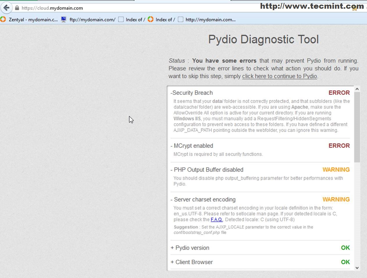 Step 2: Perform Pydio Installation