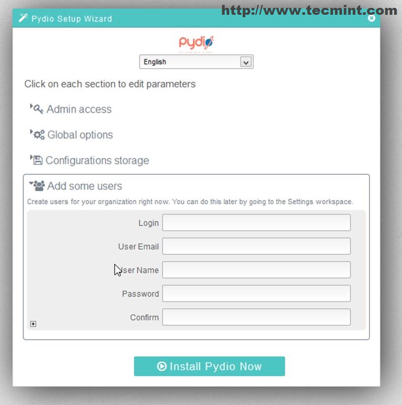 14. Also you can now add other users or you can choose to do this later from Pydio Admin Panel.