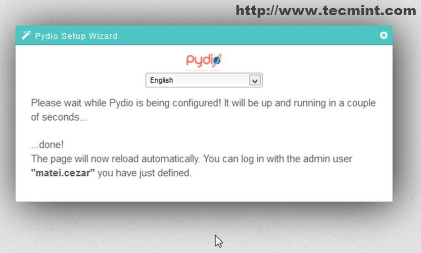 16. After the installer finish you will be automatically redirected to Pydio login webpage. Login with your administrative credentials created during installation process and setup your File and Collaboration Server ( select your preferred workspace, create new users, folders, upload files, edit users permissions etc).