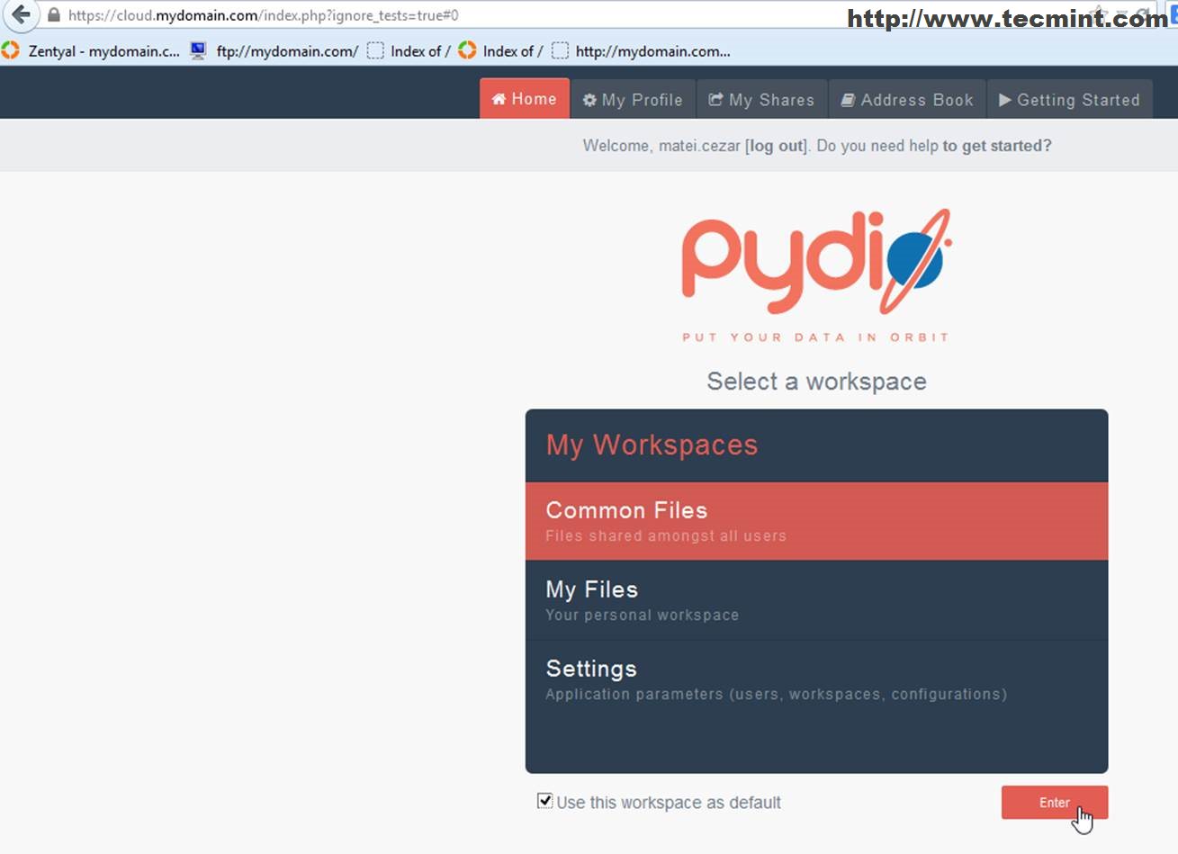 9. Now point your browser again to Pydio subdomain URL.