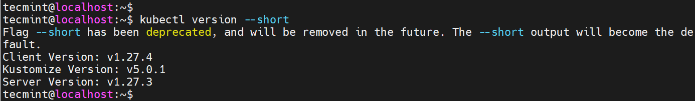 $ kubectl version --short
