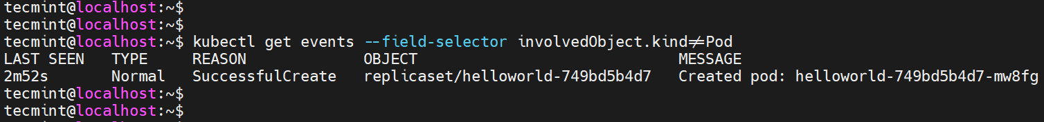 $ kubectl get events --field-selector involvedObject.kind!=Pod