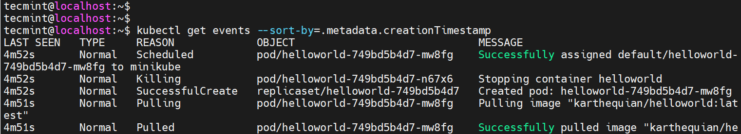 $ kubectl get events --sort-by=.metadata.creationTimestamp