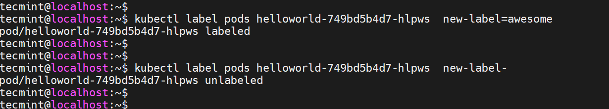 $ kubectl label pods my-pod new-label-