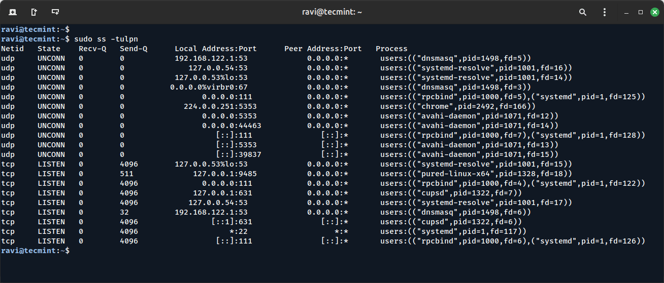 Let’s take a closer look at how to check open ports on a Linux system using a command such as ss, netstat, and nmap.