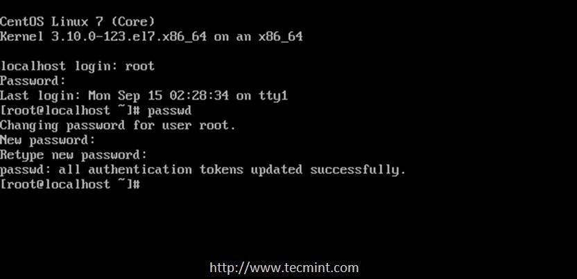 8. After the installation process finishes login to the newly installed system with root account and the password used on previous installation (the