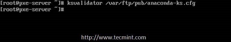 # yum install pykickstart # ksvalidator /var/ftp/pub/anaconda-ks.cfg