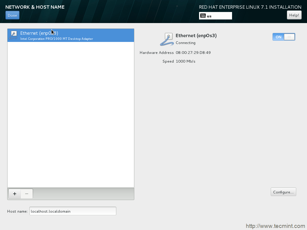 21. Enable Network and Host name from this window. You may configure the connection if required.