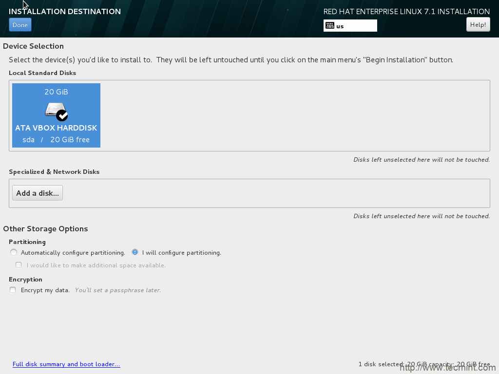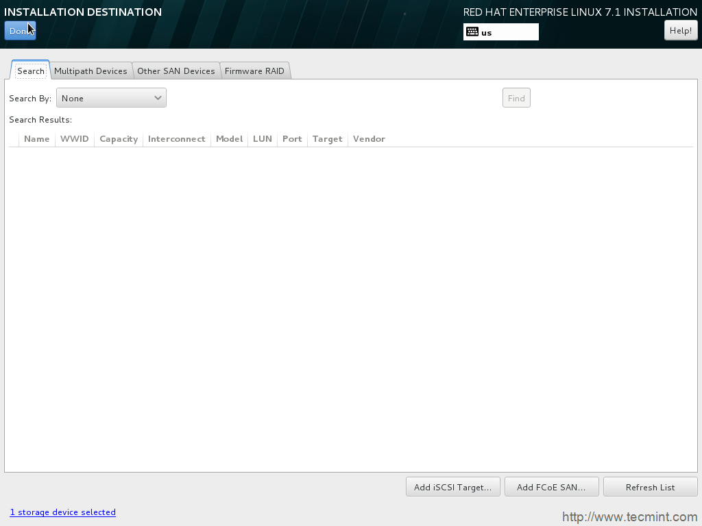 12. You may add multiple partitioning, RAID and SAN Devices. If not required, you may click done.
