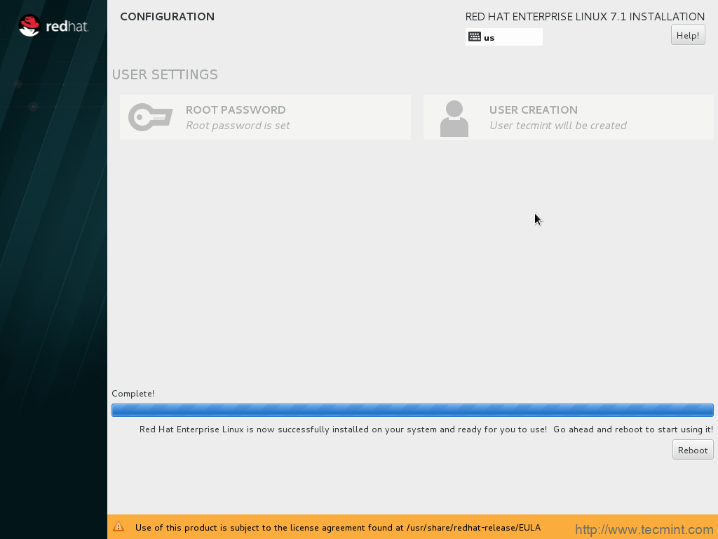 And finally “Thank You” Message. Click – Start using Red Hat Enterprise Linux Server.