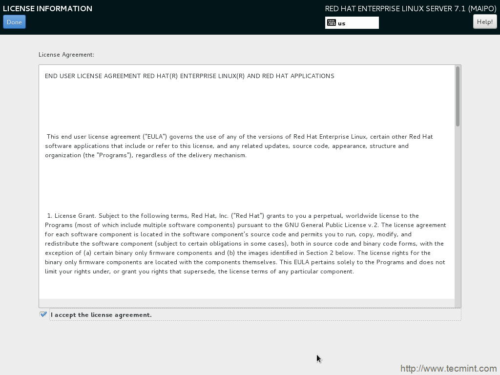 1. After downloading RHEL 7.1 DVD Binary ISO image, then burn it to a CD/DVD media or create a bootable USB media using Unetbootin LiveUSB Creator.