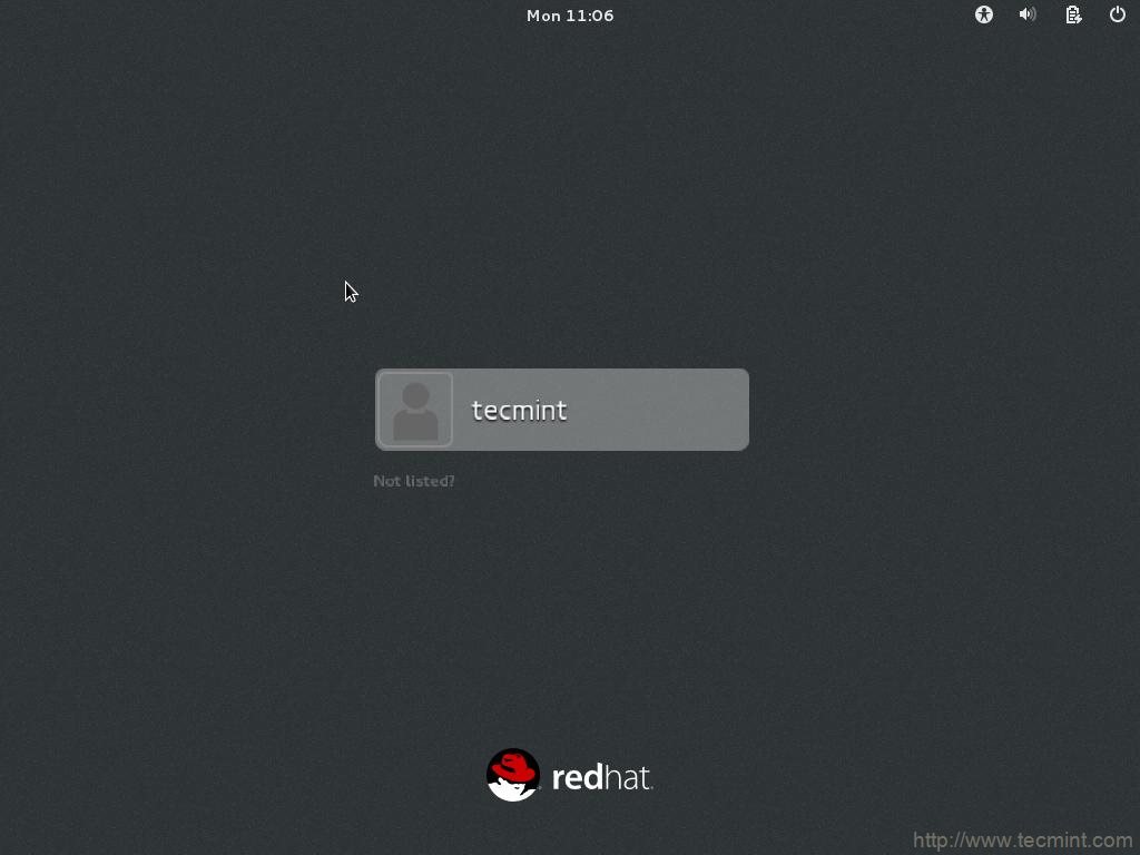 34. The login window of Red Hat Enterprise Linux 7.1.