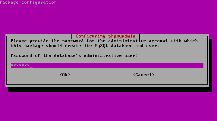15. Now enter the password for the MySQL/MariaDB administrative user so the installer can create database for phpMyAdmin.