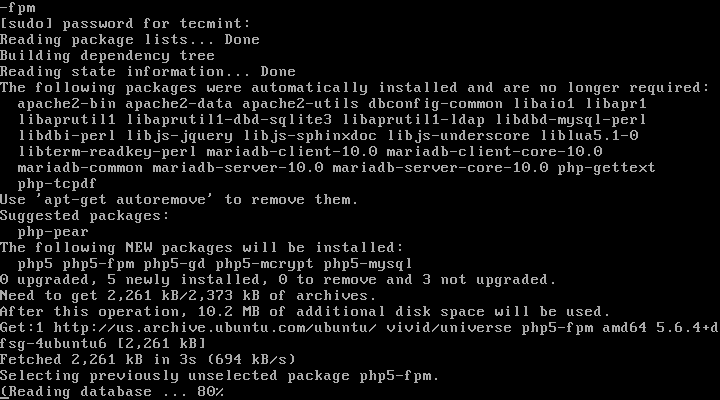 14. Finally we will install a database management frontend – phpMyAdmin a web based frontend tool for administrating MySQL/MariaDB databases.