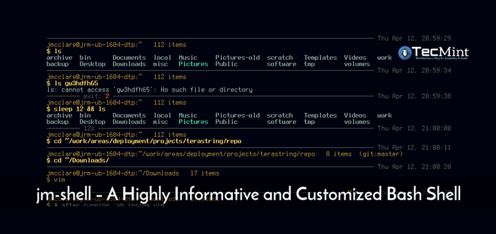 jm-shell is a free open source, small, highly informative and customized Bash shell, that gives you a great wealth of