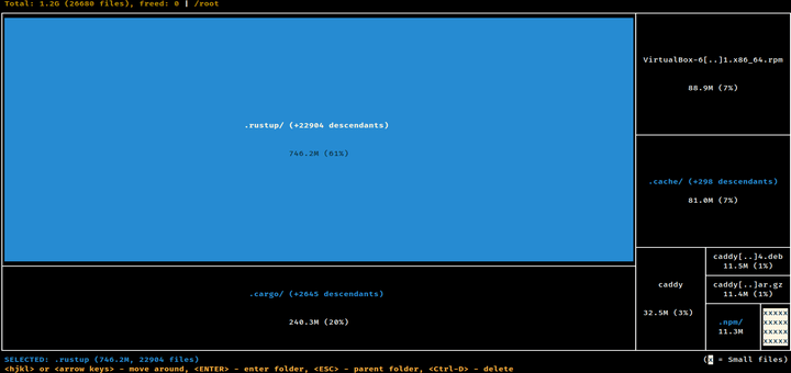 diskonaut is a simple terminal disk space navigator built using Rust and supports Linux and macOS. To use it, specify