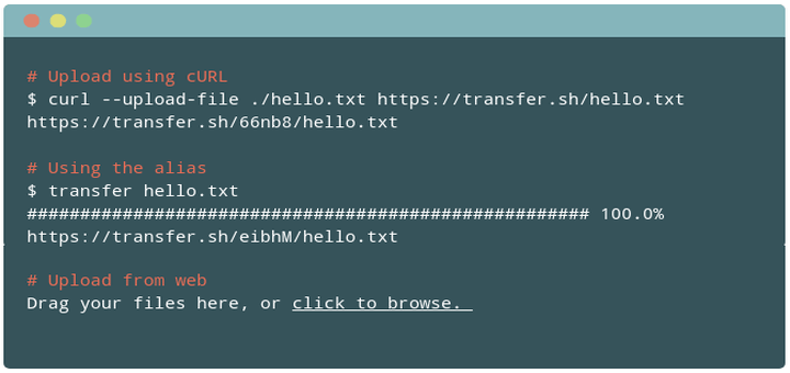 Transfer.sh is a simple, easy and fast service for file sharing from the command-line. It allows you to upload up