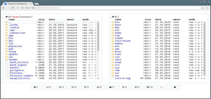 Cloud Commander (cloudcmd) is a simple open source, traditional yet useful cross-platform web file manager with console and editor support.