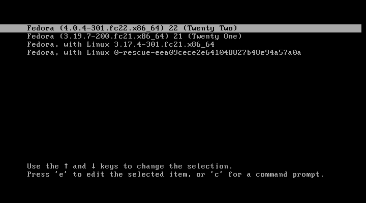 9. Once upgrade completes, system reboots automatically, you may notice Boot Menu with the text “Fedora 22”, Don’t interrupt the boot.
