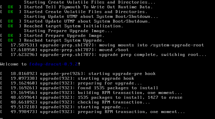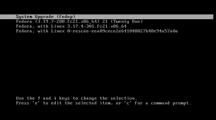 7. As soon as system boots, you will notice an extra menu “System Upgrade (fedup)” in the boot menu. Let it boot from the menu “System Upgrade”
