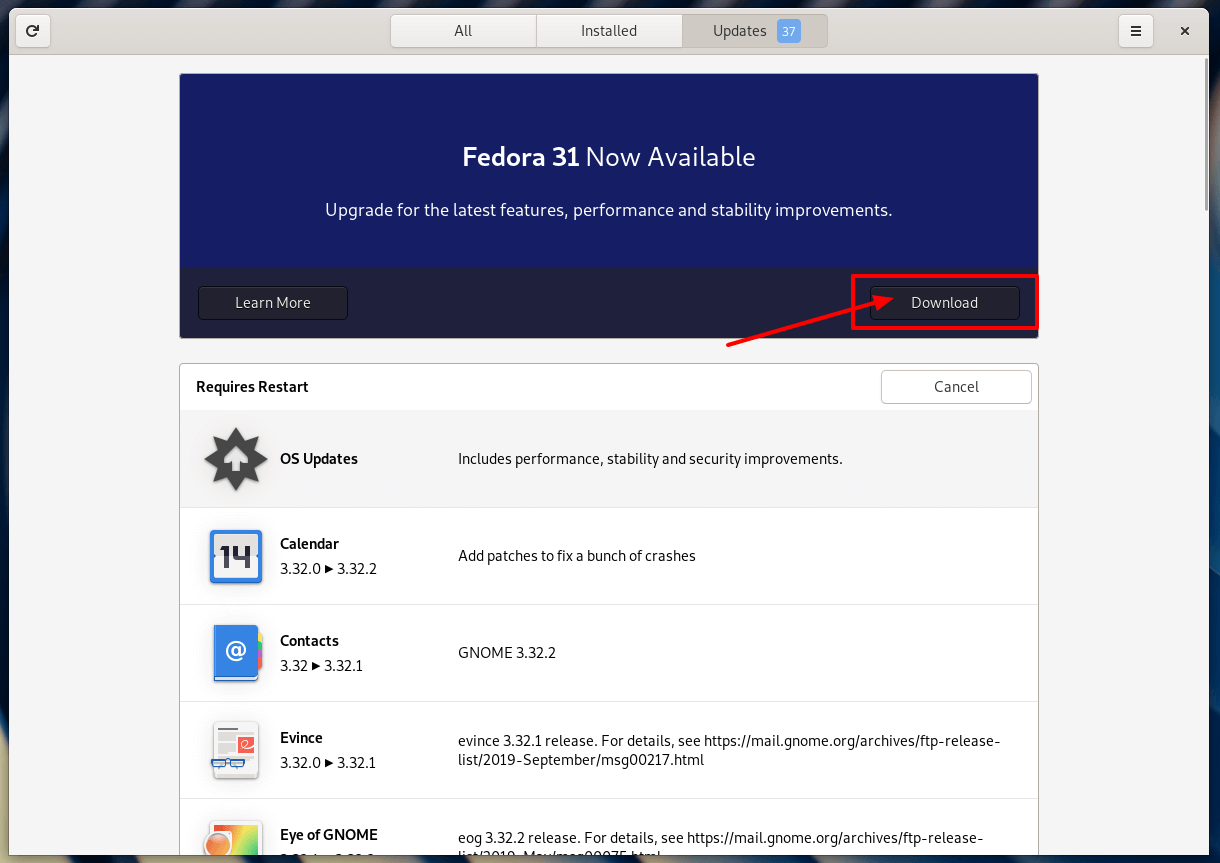 Once system updates are installed, you should see an option to ‘Download‘ to start the upgrade process and follow the on-screen instructions provided by GNOME Software.