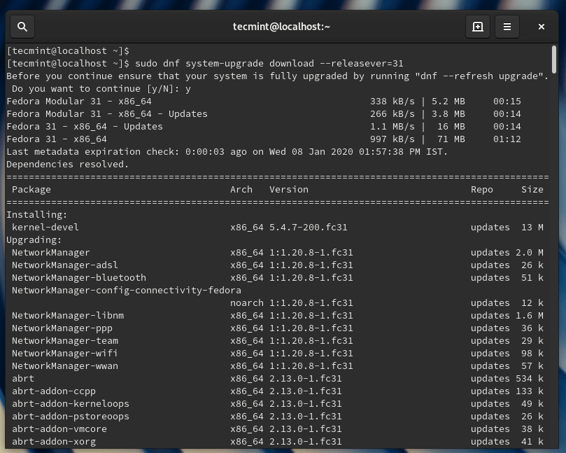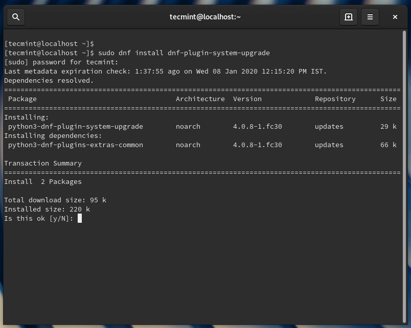 Once the system upgrade is completed, you can install the dnf-plugin-system-upgrade plugin, which is a command-line tool for upgrading Fedora systems to a new major release.