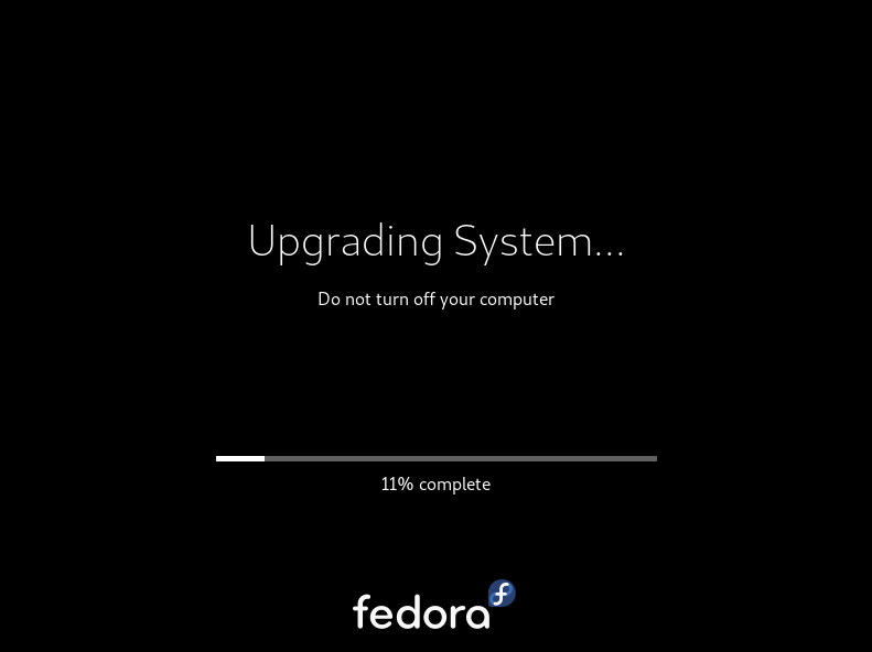 After rebooting, you will see your Fedors system upgrade installation process as shown.
