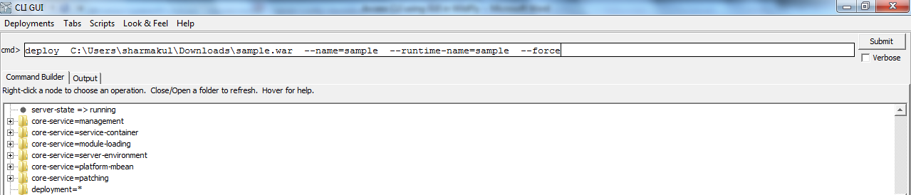 Using this we can construct our commands which can deploy applications present on our local file System, i.e. we don’t need to connect and copy application to Server for Deployments.