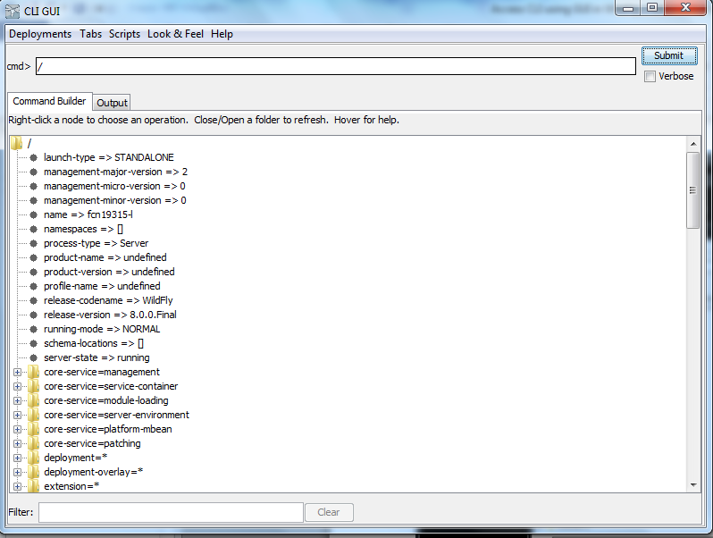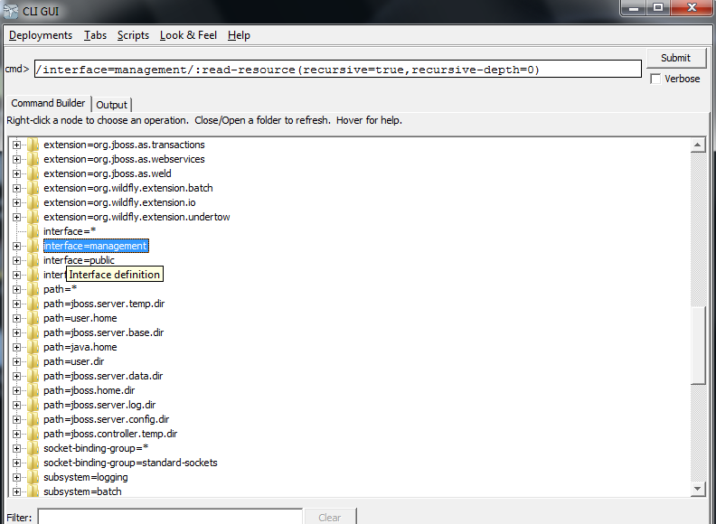 [root@tecmint bin]# ./jboss-cli.sh --gui