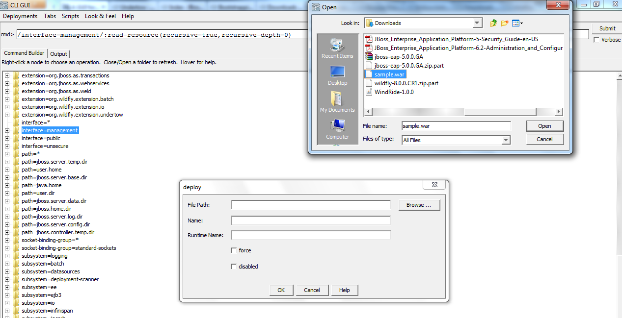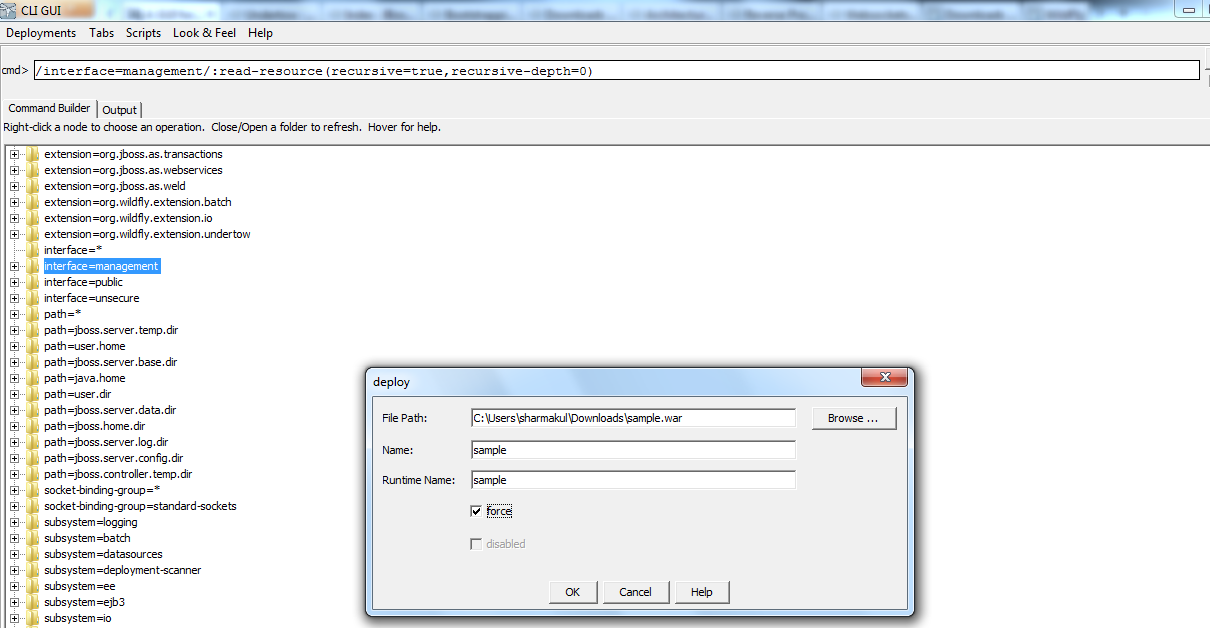 In last article, we have discussed about WildFly-8 (New enhanced version on Jboss AS). We have gone through the new functionalities and features added/upgraded to this version. Today, in this post we are going to discuss about the CLI management using GUI and how to manage the Server using GUI version on CLI management.